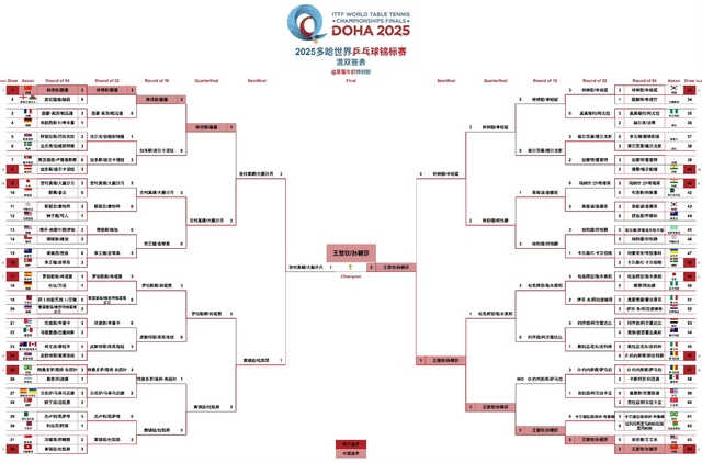 恭喜王楚钦/孙颖莎达成世界乒乓球锦标赛混双三连冠