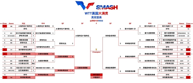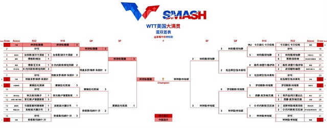 WTT美国大满贯混双决赛:林诗栋/蒯曼VS林钟勋/申裕斌