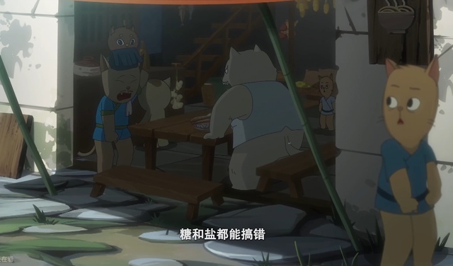 而白糖吃饭的手停顿了一下,心中是对同伴的爱的幸福与对无法与同伴们说出痛苦的酸涩与无奈。