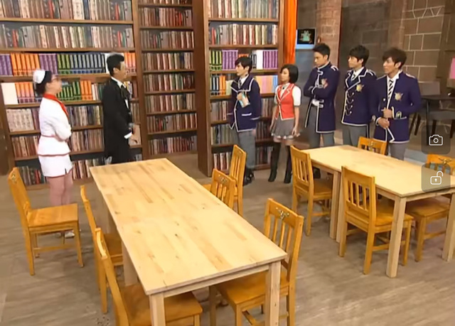 帕滑落地一定是这样啦!所以啊,(走到一边)她才愿意牺牲自己被阴森惩罚抓去所以她心目中最疼爱的就是你们这些学生!