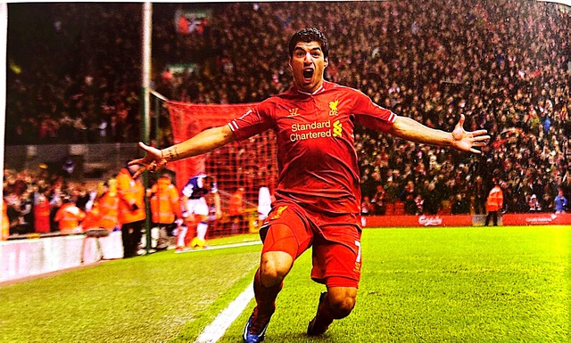 2014年1月28日,苏亚雷斯锁定主场四比零埃弗顿的大圣与雨夜之中激情华贵。