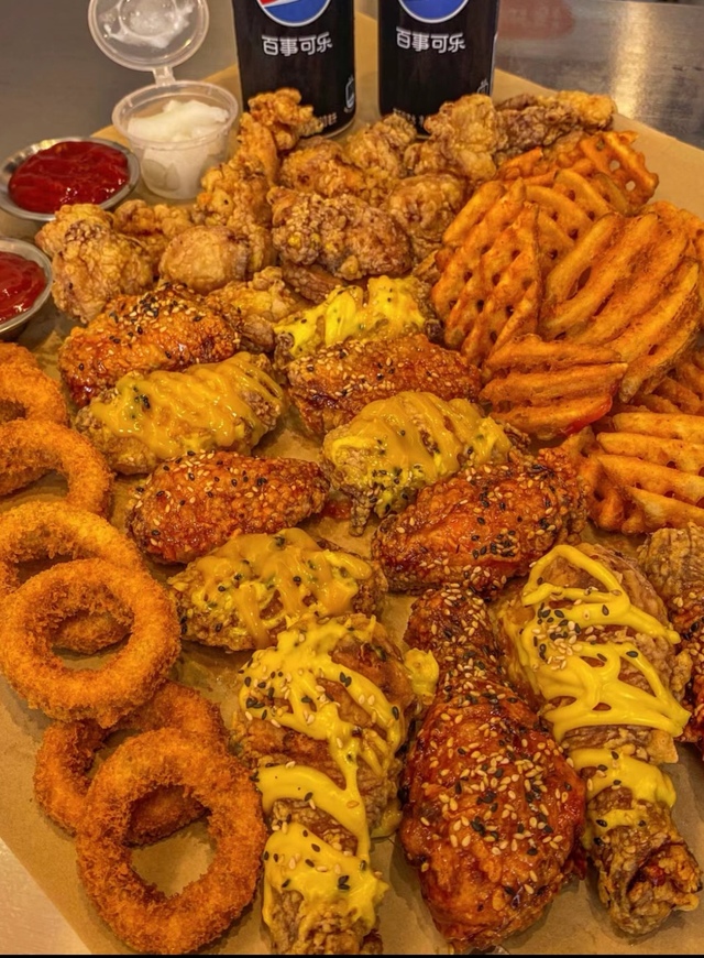多味炸鸡,鱿鱼圈,炸翅,炸地瓜,炸翅根。