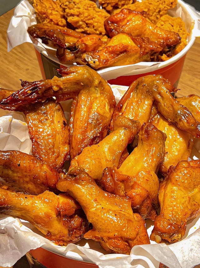 奥尔良烤翅,蒜香鸡翅,大薯条。