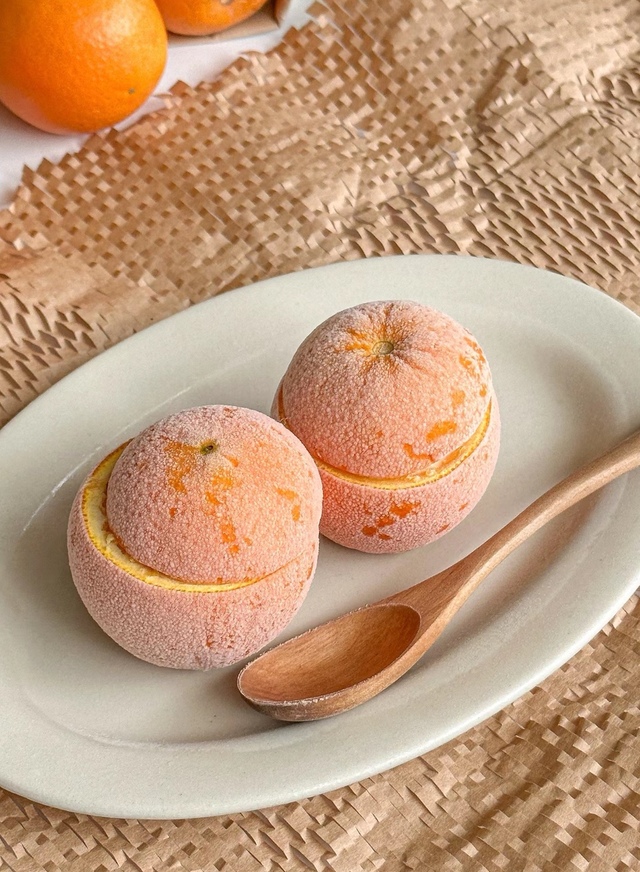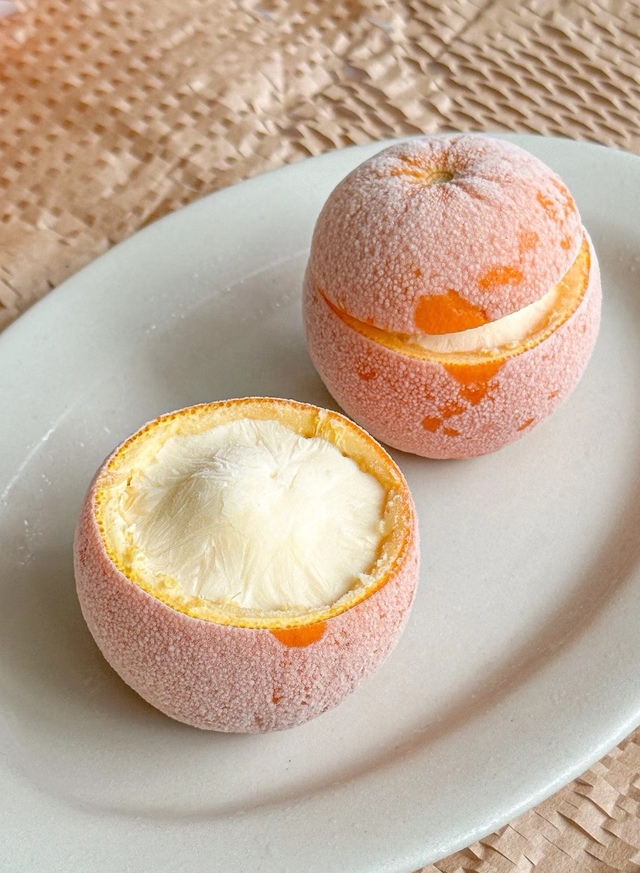 先是做冰淇淋,拿出几个橙子,挖出果肉,加上酸奶奶粉果肉打碎然后放到橙子里,放进冷冻等吃完饭拿出来就差不多了。
