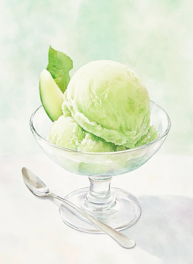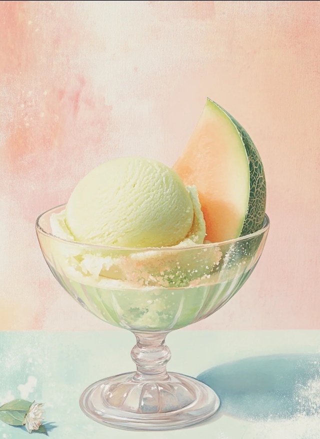 甜点草莓蛋糕,橘子冰淇淋,哈密瓜冰淇淋。
