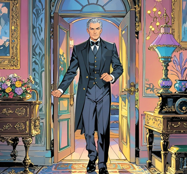 一身黑白相间的燕尾服裁剪得恰到好处,贴合着他的身形,仿佛量身定制一般完美无瑕。