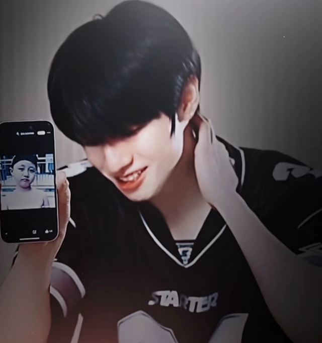 他把手机举起来对着镜头,头不自觉地低了下去,像是有点不好意思展示。