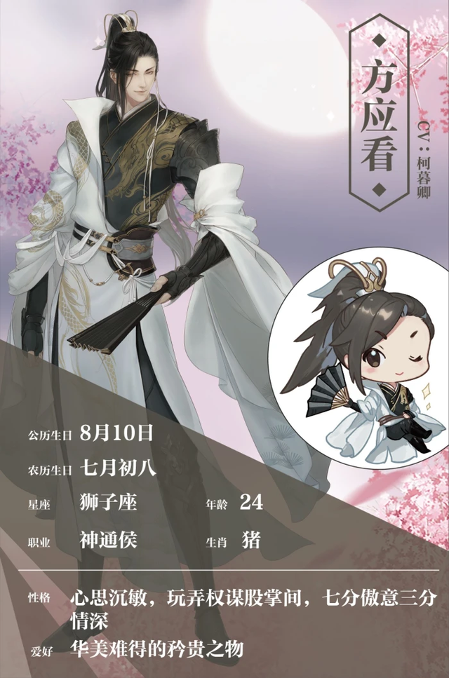 方应看神通侯方应看,江湖人称“神枪血剑小侯爷”,有桥集团实际领导者。方应看其人心思沉敏,在朝堂和江湖之间左右逢源,可谓翻云覆雨一手间。他见人都带着笑意,但没有人知道那莫测的笑意之下埋藏着何等深渊。
