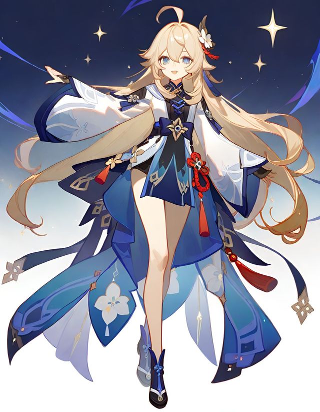 一位少女留着银色长发,右侧耳旁的有些长的一缕头发用几片竹叶的坠子扎住,显得她特别温柔 腰间带有很多长短不一的细小的穿短不一的竹节走动起来发出很悦耳的声音。