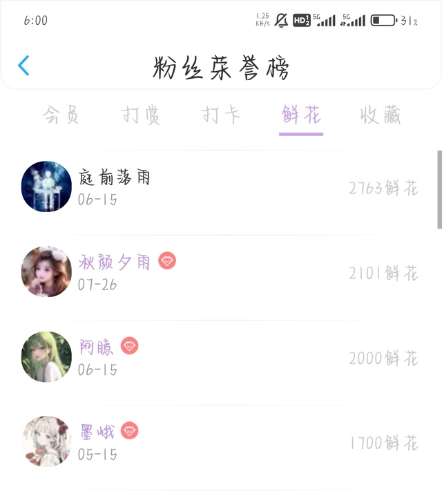 鲜花榜前三(除我以外)如下三人,