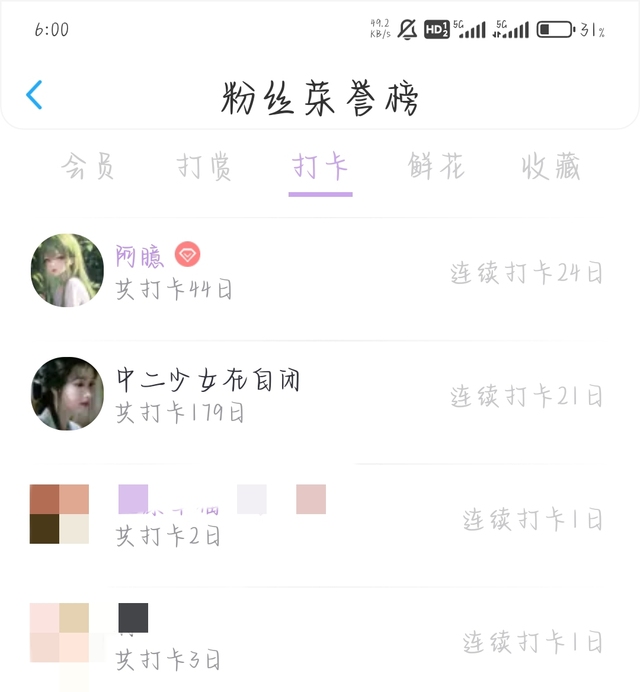 打卡榜(连打)前三如下三人: