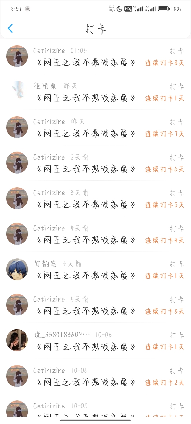 同样感谢G同学近日来的连续打卡!——这是我前几天某次抽取的打卡截图