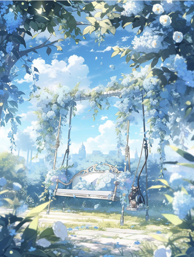 这时人类世界有个女孩坐在秋千上的女孩手里拿着萌学园入学通知书