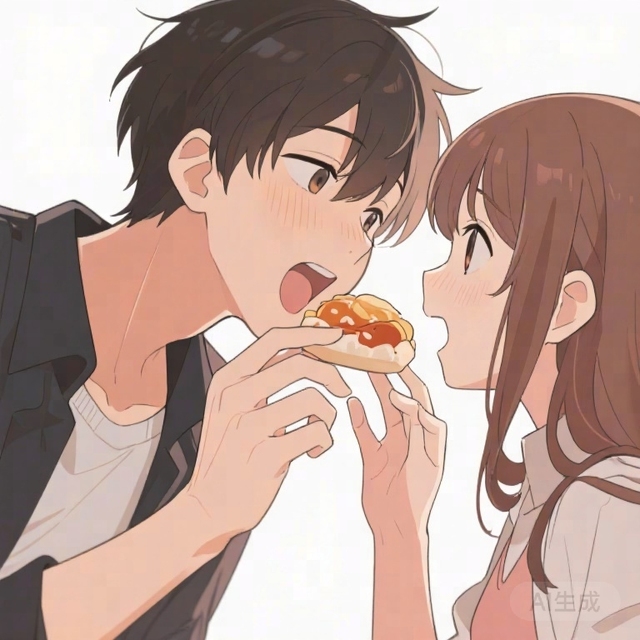 你看见一博的嘴角沾了一颗黑芝麻,于是笑着伸手给他擦掉。