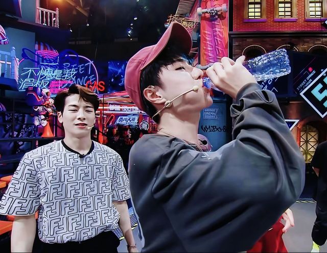 这时一位女生递上一瓶水给一博,王嘉尔直接接过还给他。