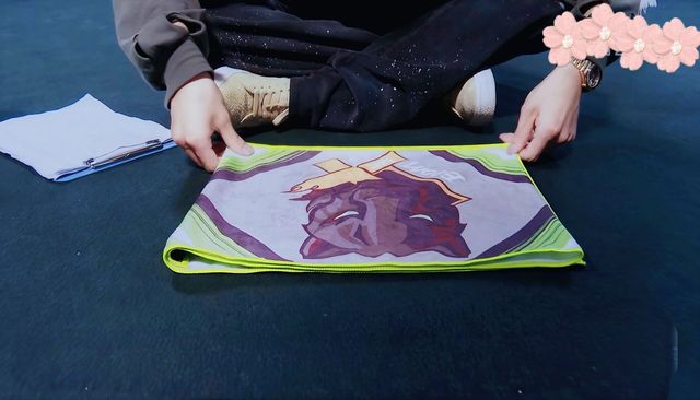 这不,在悠闲的叠毛巾呢。