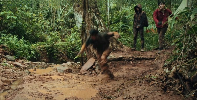 张起灵带着吴邪来到一处泥潭前,顺手把吴邪扔下去