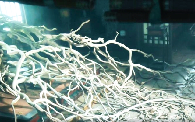 只见房间内,中央的树干如同一个巨大的生命体,向四周蔓延出无数的树藤