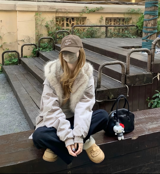说着便上手给她戴,看着她的眼睛,左右看了看又找来一个帽子
