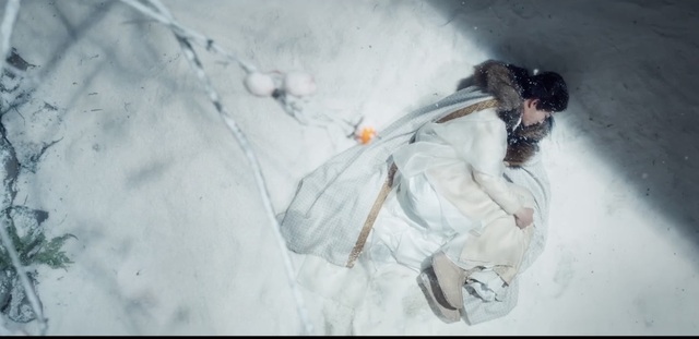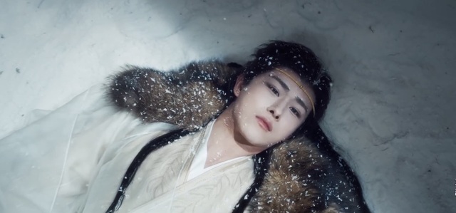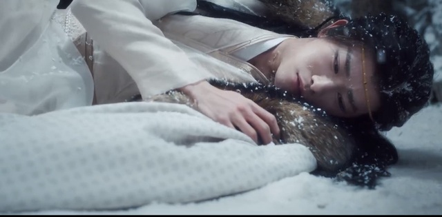 此时小卓身穿一袭白衣,似是卸下了所有的防备,躺在雪地里,静静地感受着雪的寒冷,一如他的心一样