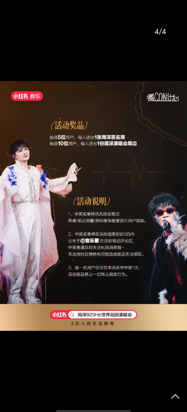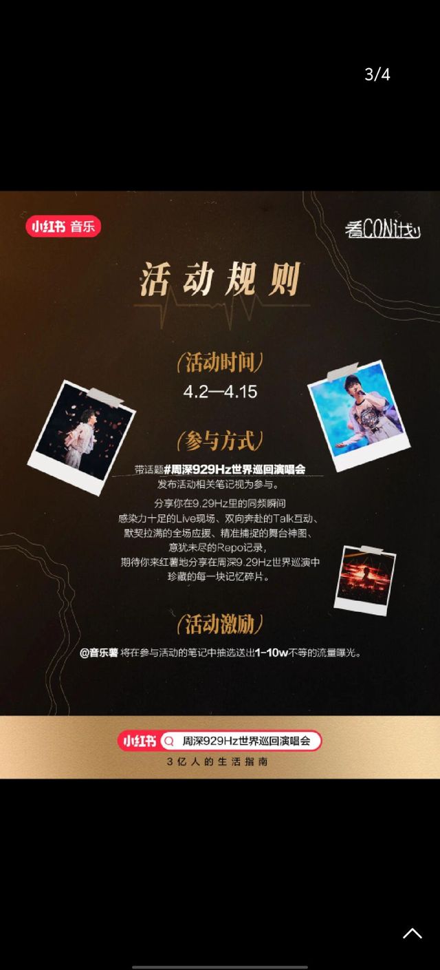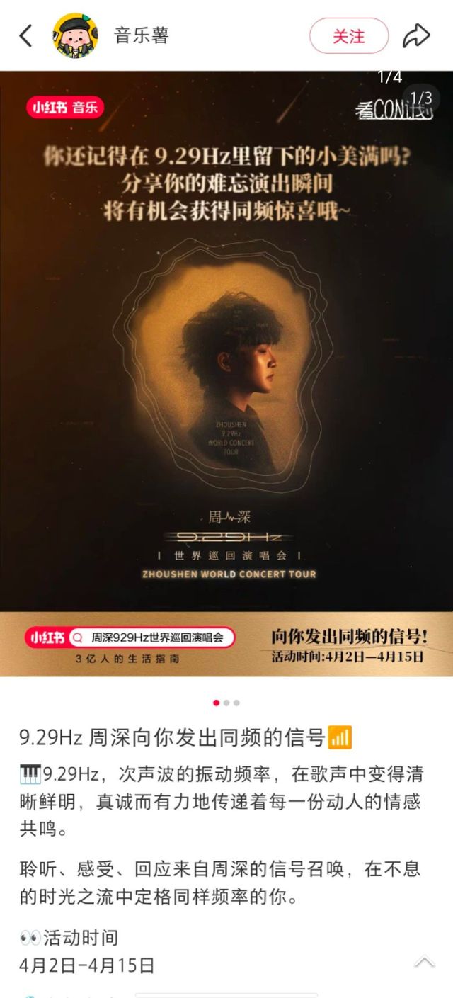 🍠带话题#周深929Hz世界巡回演唱会 发布活动相关笔记:Live现场、Talk互动、全场应援、舞台神图、Repo记录……