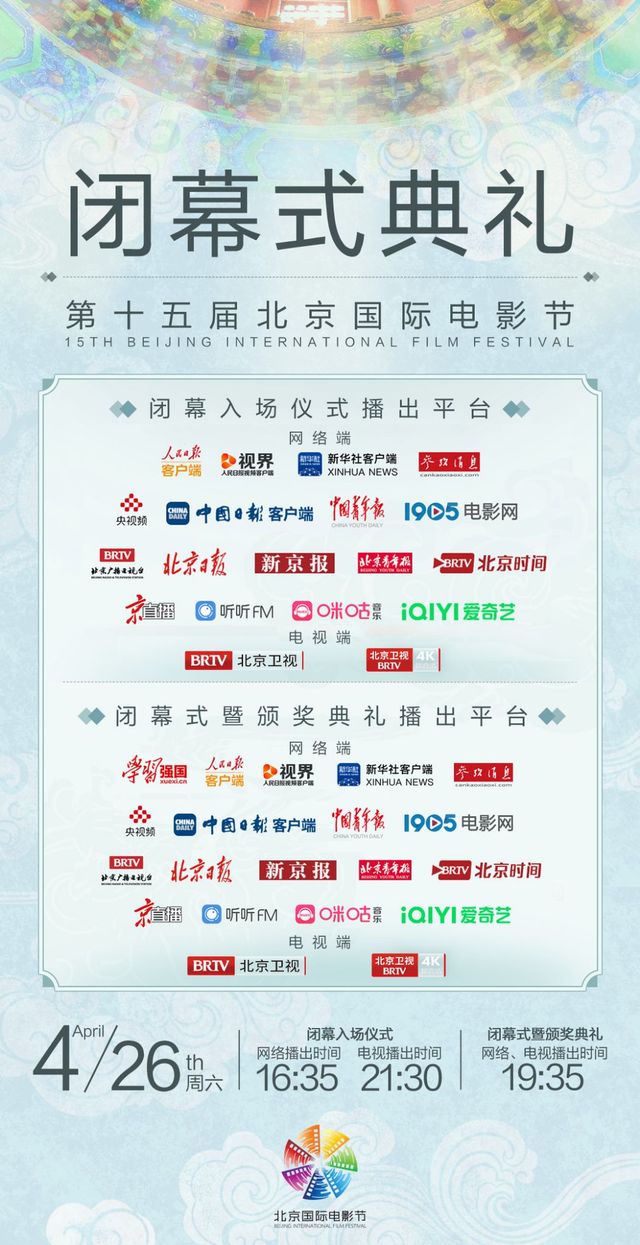 北京国际电影节闭幕#荣耀盛典今晚开启!闭幕入场仪式网络播出时间16:35、电视播出时间21:30,闭幕式暨颁奖典礼网络、电视播出时间19:35!“天坛奖”归属即将揭晓,让我们准时锁定闭幕入场仪式播出平台、闭幕式暨颁奖典礼播出平台,期待@卡布叻_周深 带来精彩表演,共同见证光影荣耀的归属!北京国际电影节#