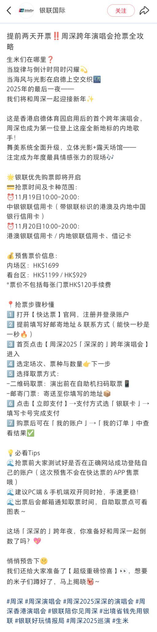 #周深香港跨年纪念场#银联优先购/票攻略!