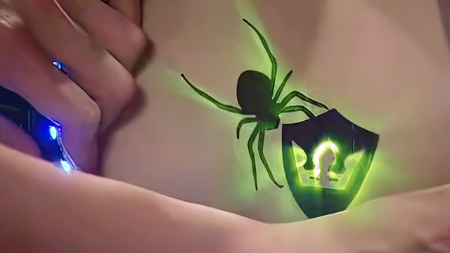 艾瑞克拉开谜亚星的衣服,只见他胸口的图腾上,出现了一只黑色的蜘蛛。
