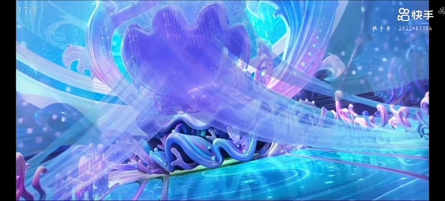 不远处,依稀可见一座宏伟的宫殿一角,其独特的建筑风格完美融合了海洋的元素。