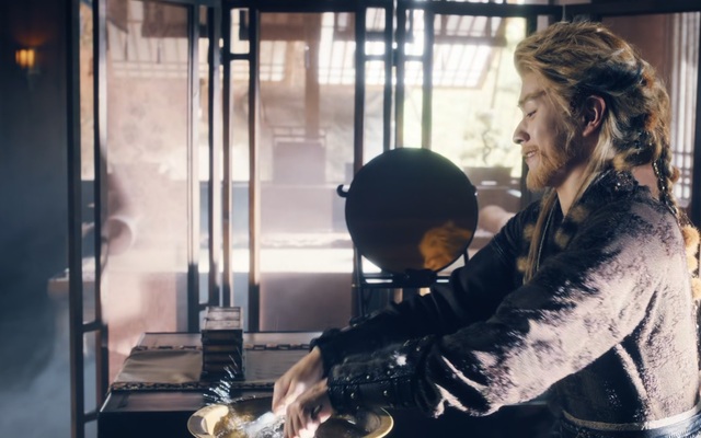 他下定决心拿起剃刀在水里沾湿。在他要往自己脸上下刀时,念汐忽然冒了出来握住了他的手。