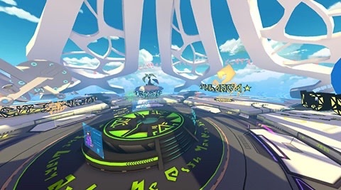 这是一个宽阔而富有科技感的广场,建材细腻而不真实,且拥有着许多悬浮设计。