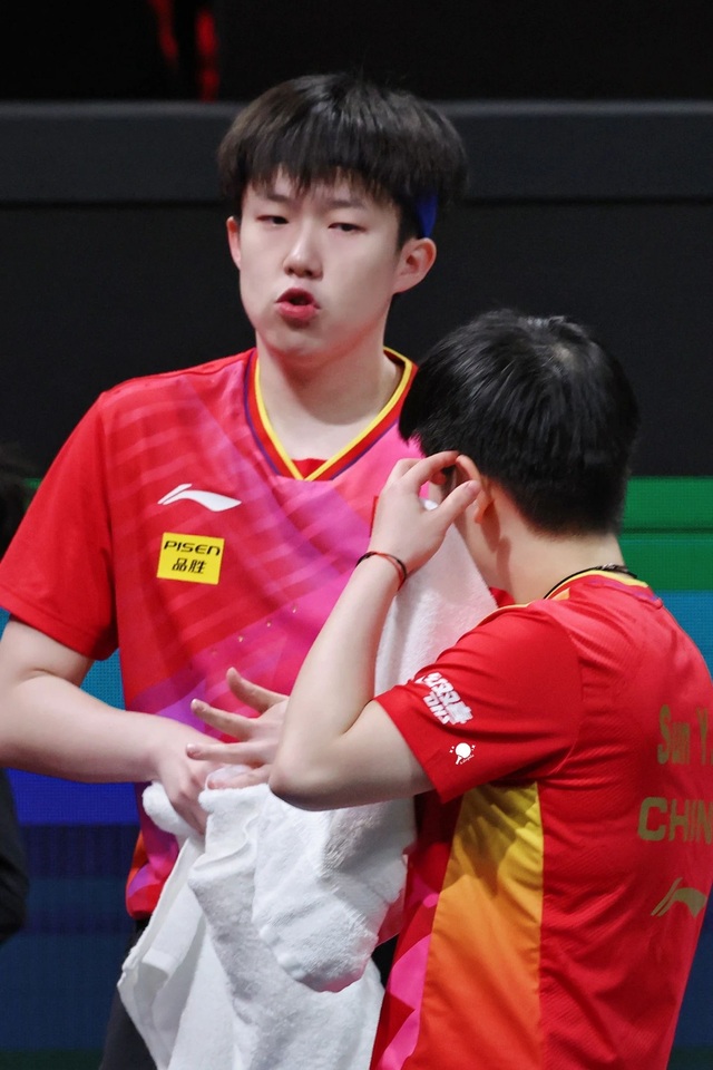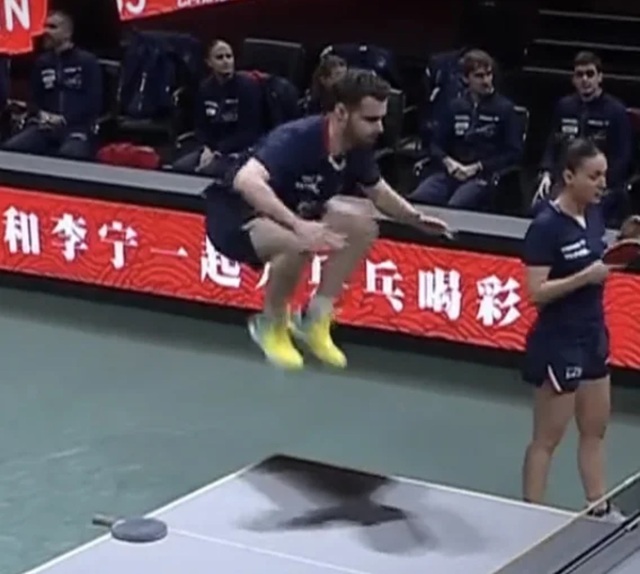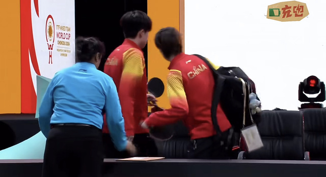 莎头组合3-0战胜法国队,气得法国队女队员摔毛巾了,最后几板大头都是一板过,太帅了