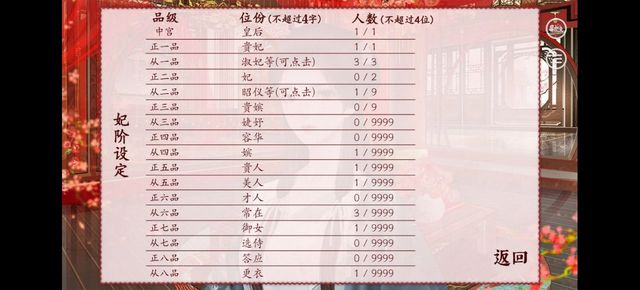 还有一个嫔妃等级表,我没有改动,就按这个来。