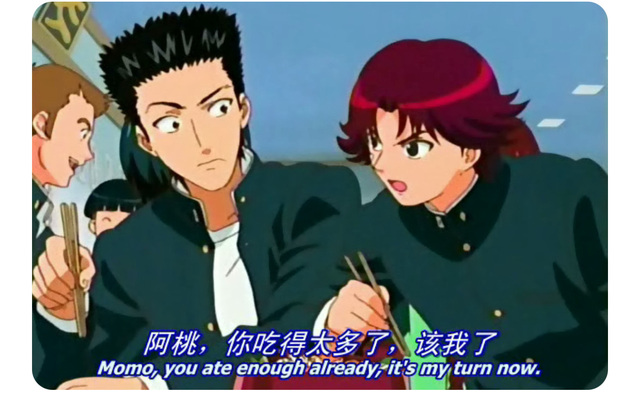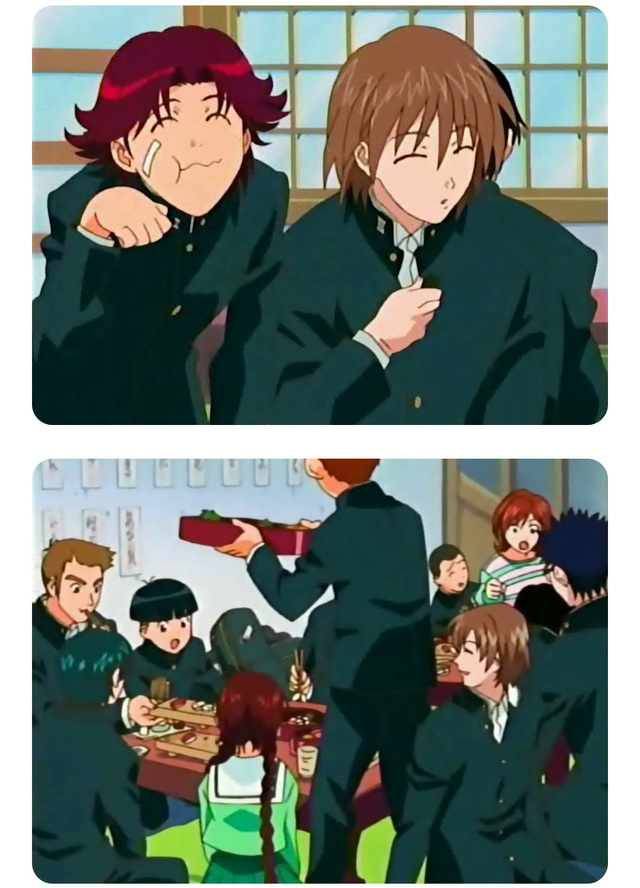 【去医院处理好眼睛的伤口后,龙马被龙崎教练带到一家寿司店门口,拉开门一看,好家伙,怎一个吵字了得