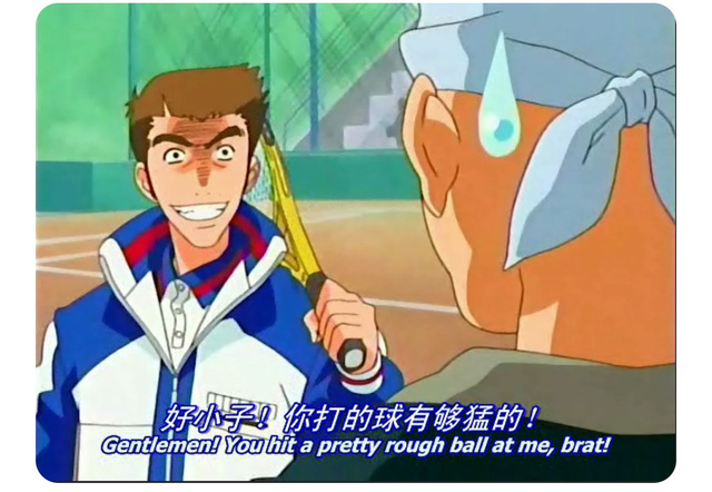 “别在意我的伤,”龙马颇感兴趣地说道,“你在搞什么把戏?让我的手臂…麻痹了一会儿。”说罢将球发了出去