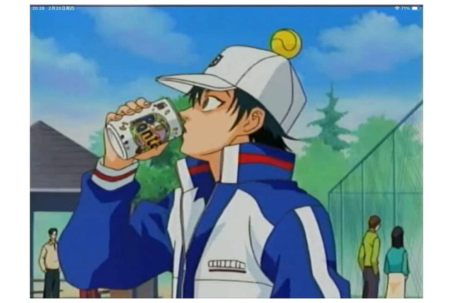 这一球威力可不小,球落地回弹后直接越过围着网球场地的铁网,向场外飞去,巧的是,正好砸在坐在长椅上喝着ponta的龙马的头上