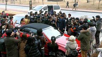 刚开出去就被记者围堵了!