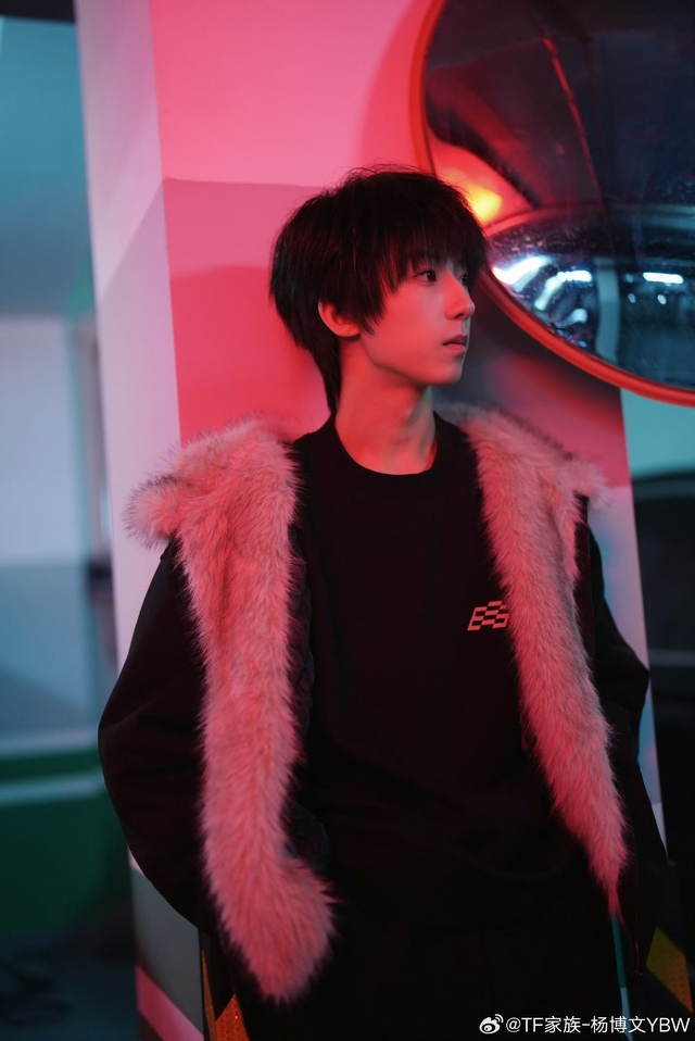 今晚的杨博文,一袭黑色西装,肩线尽显英挺,银色暗纹若隐若现,增添几分低调奢华。