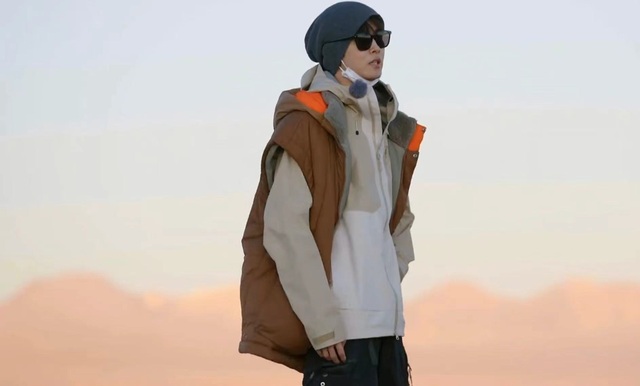 你带着口罩和墨镜防止沙尘吹到脸上或者迷了眼睛