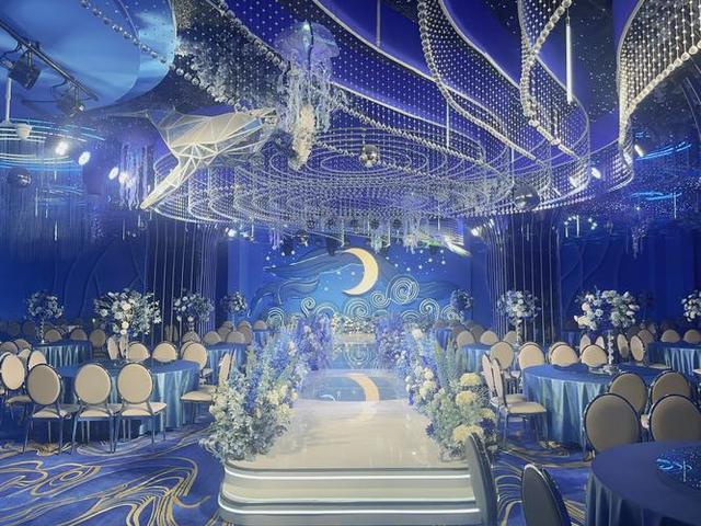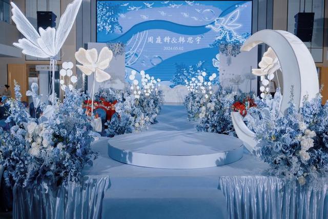陆祎钧"我知你钟情于那一抹静谧的蓝。不如,就让这抹蓝色成为我们爱情的底色吧。婚礼现场将以深浅不一的蓝色调为主,从淡雅的天蓝到幽邃的宝蓝,层层递进,宛如一片梦幻的海洋。而新娘的婚纱,将选用一袭优雅的浅蓝色真丝礼服,如同晨曦中泛着微光的湖水,在阳光下闪烁着温柔的光泽。
