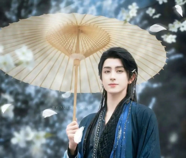 就在这时,天空突然泛起一片奇异的紫色,原本皎洁的月亮也渐渐染上了紫红色的光芒。她惊愕地抬起头,从未见过如此景象。只见一道黑影从月亮上缓缓降下,一位身穿黑紫色长袍的男子出现在眼前。他消瘦的身影透着几分孤寂,眼角一颗泪痣格外醒目,眉间垂落几缕青丝,英俊却不失冷峻。