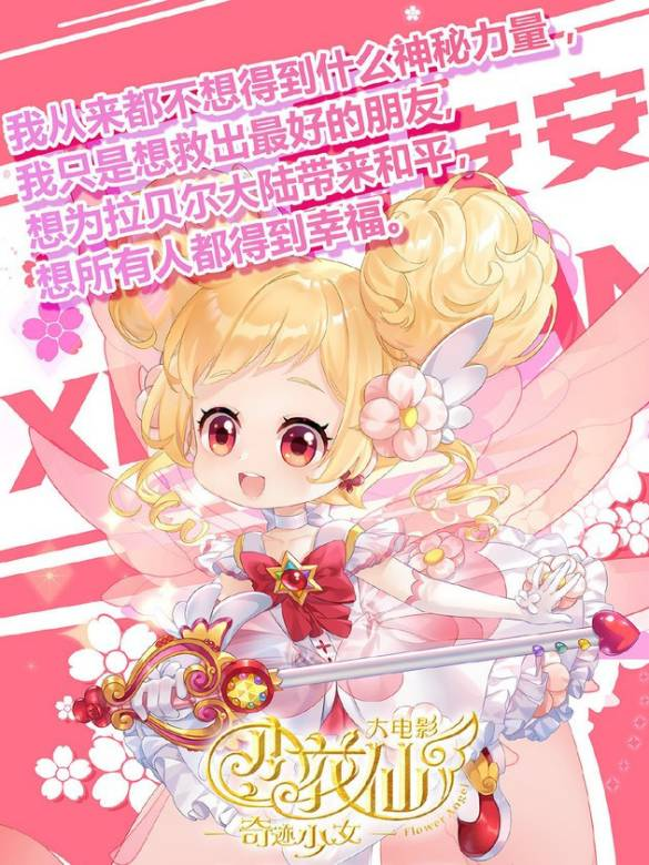 夏安安花仙魔法使者夏安安,变身!花朵的精灵们啊,赐予我勇气与使命!爱心、美丽、智慧的力量啊,汇集其一切美好,魔法凝结!