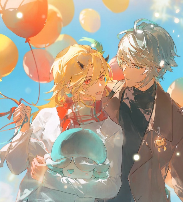 卡维的脸忽然变得更红,这时艾尔海森经过一个拿着很多个五颜六色气球的人,趁着卡维去了洗手间,艾尔海森买下了一个红色的气球,并将它放在自己身后,然后又去了另一个摊位,那里摆满了毛茸茸的布偶,经过一番精心的筛选,最后他选了一只和他眼瞳颜色相似的蕈兽