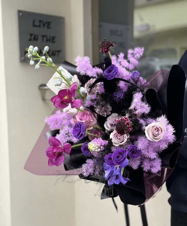 首尔某花店内,一个个子纤长的俊美男人在认真的挑选着花束,挑选完之后便走到结账台让店员帮忙包扎一下。