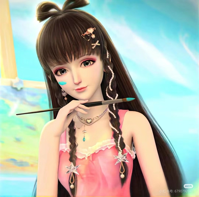 光芒渐渐消失,王默轻轻地落在了地上:微长的齐刘海分开(感觉王默刘海分开比较好看),一部分头发绑成蝴蝶结固定在头顶(参考珍珠默,头顶爱心什么的是真的受不了),原本是长直发变成了水母头(真的超级可爱!其实就是默默的短发加长发)一部分头发绑成麻花辫垂落身前,金色的珠子与珍珠缠绕交织在辫子上(这个是因为铁希,铁希的头发不是被绑成麻花辫了吗所以就加了,只是取了一部分,依然是散发,珍珠就参考珍珠默实在懒得想了),戴着一个金色的宝剑形状的发夹(另外的头饰就直接参考珍珠默的)