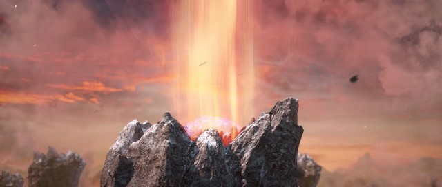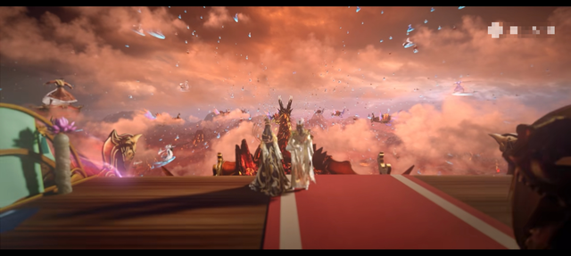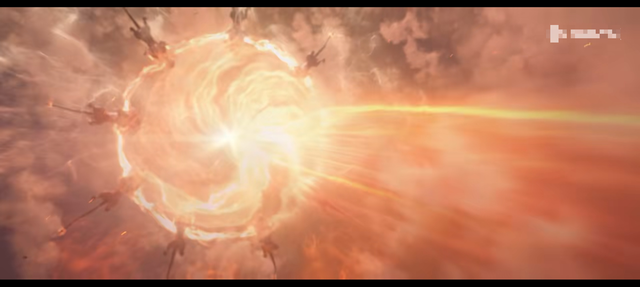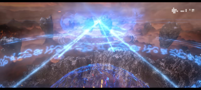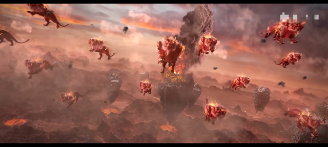 只见在天空云层之上,几只巨大的火兽组成一个圆圈,圆圈中漂浮着一个火环。