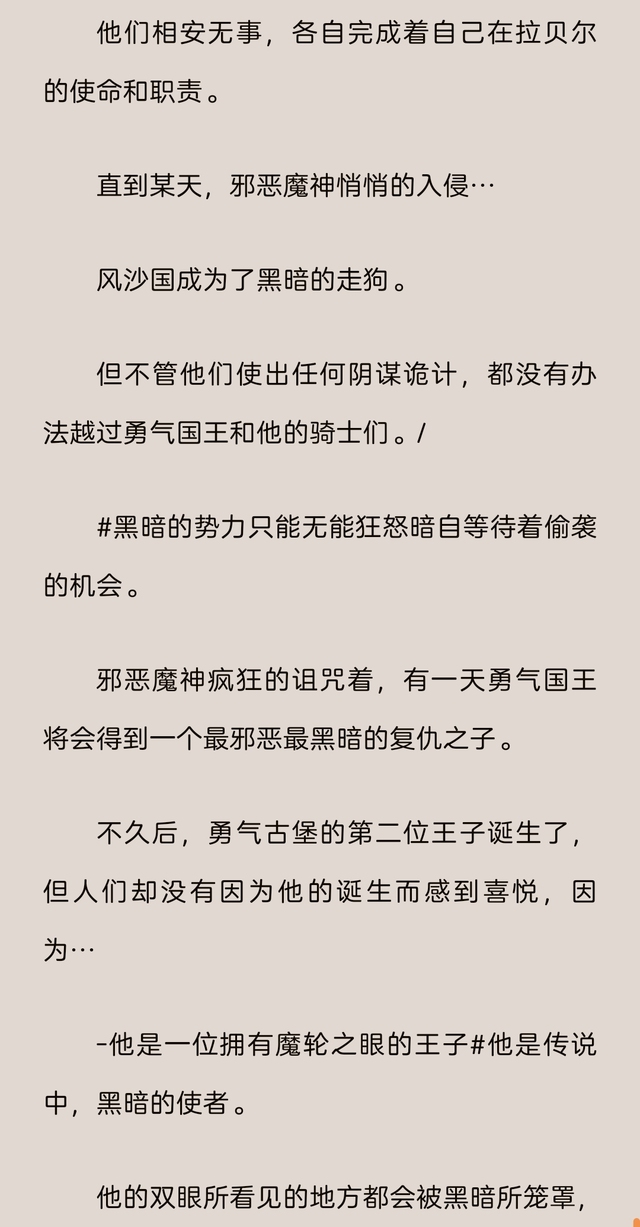 西蒙叼着草 坐起身,他伸了个懒腰。看着远处美丽的风景,西蒙温柔的说:“塔巴斯,你是这个世界上最特别的,是女神赐给勇气国的礼物。”