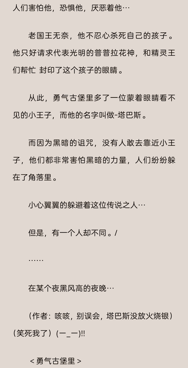 塔巴斯想到那些人议论的声音,他心情低落的说:“是不是因为我什么也看不见,所以那些人都那样讨厌我呢?”