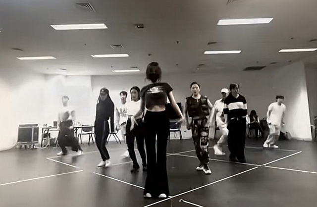 成员们知道她要录制都是没有到时间提前了一个小时到的练习室,十四个人的练习室超大,她一个人用只用了一小部分,