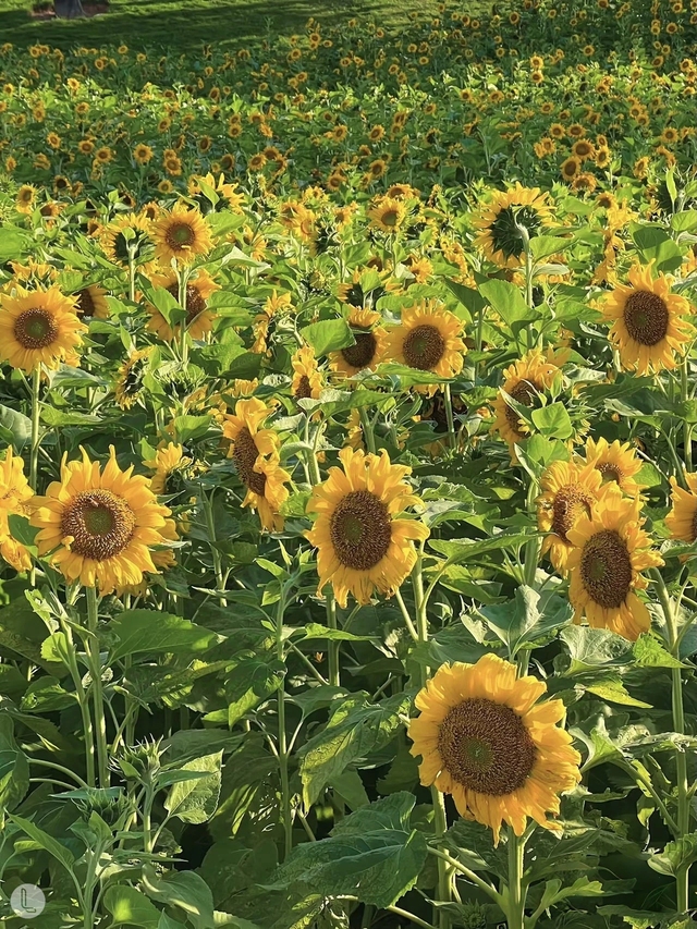 踏进那片向日葵花丛,刹那间呼吸都好像被那连片的金黄夺去。一朵朵傲然挺立在翠绿枝叶上的向日葵,如同燃烧的太阳。